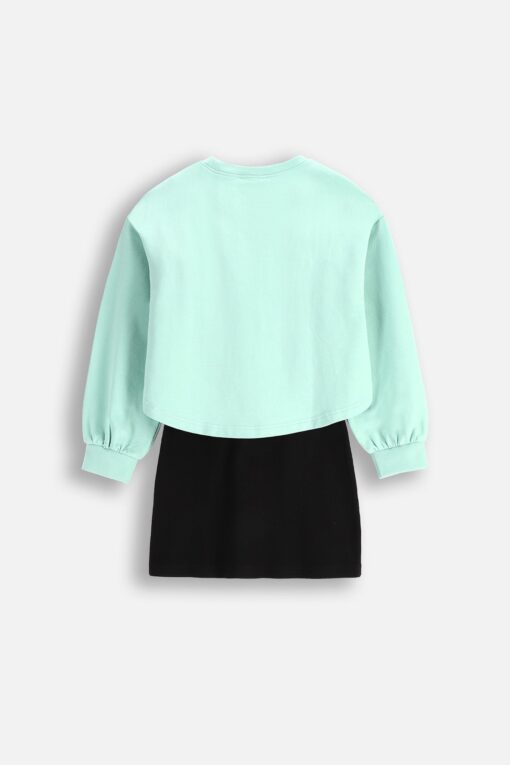 Otkrijte jedinstvenu dvodijelnu haljinu za djevojčice koja kombinira stil i udobnost. Gornji dio u suptilnoj nijansi mente s natpisom ‘Pa, to je lijepo’ dodaje modernu notu, dok crna suknja stvara elegantan kontrast. Izrađena od mekane pamučne tkanine s daškom elastana, ova haljina osigurava slobodu kretanja i udobnost tijekom cijelog dana. Savršena je za svakodnevne izlaske, obiteljske proslave ili susrete s prijateljima. S certifikatom ECO 5®, ova haljina ispunjava visoke sigurnosne i ekološke standarde, čineći je odgovornim izborom.
