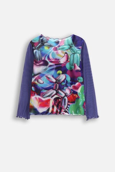 Ova očaravajuća majica dugih rukava za djevojčice kombinira živopisni višebojni motiv igračaka koji dodaje energiju i radost svakom outfitu. Izrađena s modernim mrežastim slojem koji pruža laganu i suvremenu pojavu, nudi udobnost zahvaljujući zaobljenom izrezu. Savršena je za hladnije dane, dok dugi mrežasti rukavi osiguravaju eleganciju i toplinu. Napravljena od materijala koji su prijateljski prema koži, ova majica također je certificirana s ECO 5®, što jamči najviše ekološke i etičke standarde, čineći je idealnim izborom za svakodnevne avanture ili posebne prigode.